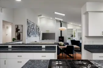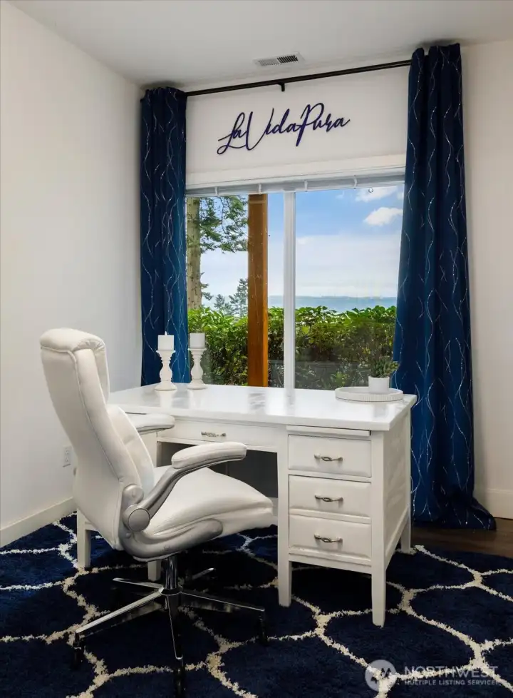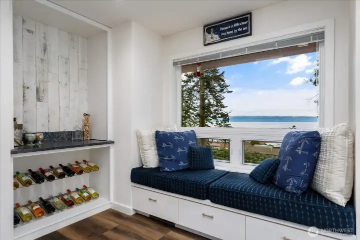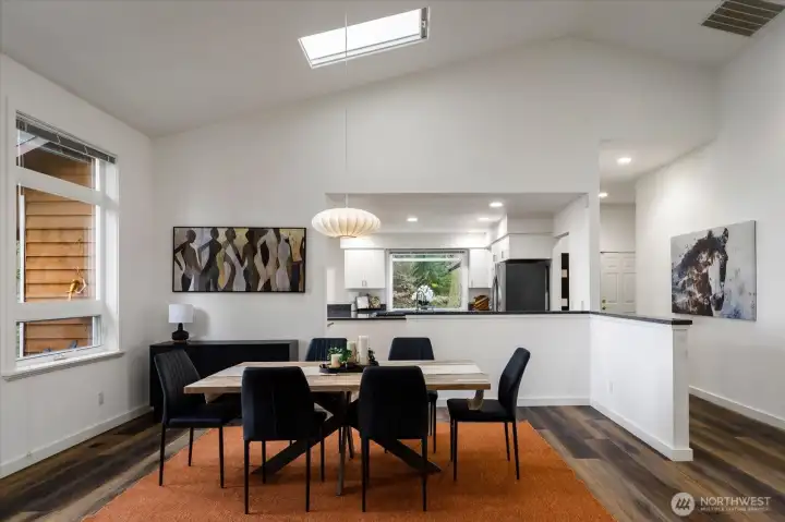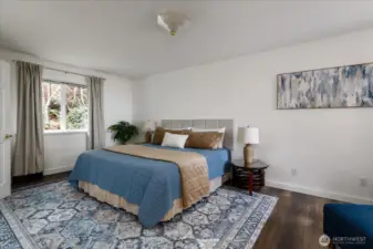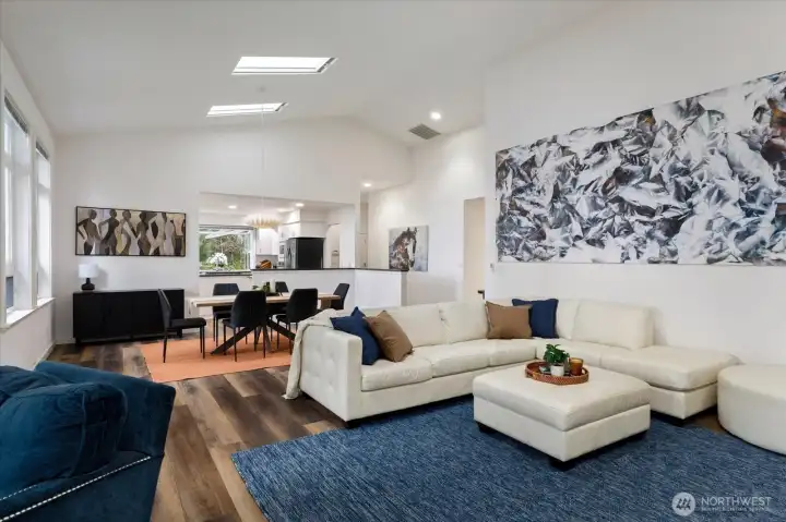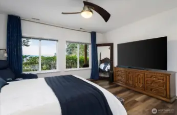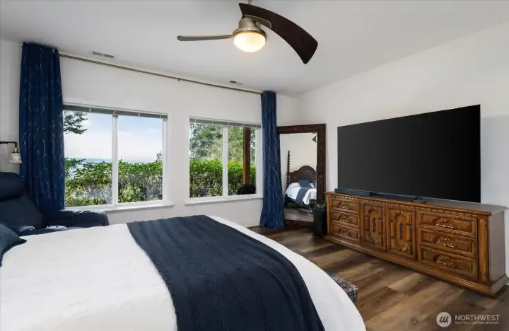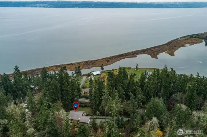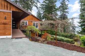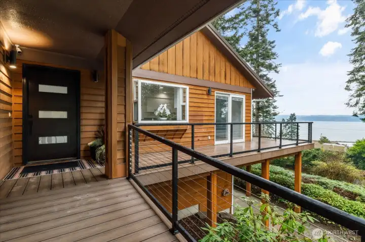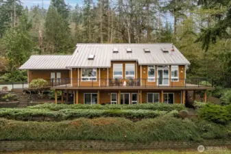 Experience the essence of Northwest contemporary living in this beautifully remodeled, light-filled home with panoramic water views. Vaulted ceilings, dramatic skylights, and a full wall of windows create a bright, airy atmosphere year-round. Enjoy true main-floor living with an open, modern layout, plus a full walk-out basement apartment ideal for guests, multi-generational living, or income potential. Thoughtfully updated throughout with too many upgrades to list, this home even includes a hidden secret room for added versatility and charm. Tucked privately on 2 serene acres and set back from the road, this retreat offers the perfect blend of nature, privacy, and sophisticated design.