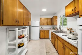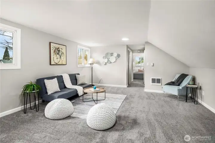 Welcome to your beautifully maintained home offering incredible flexibility & space w/NO HOA! The upper level features a private retreat w/a bedroom, living area, 3/4 bath & kitchenette - perfect for multigenerational living, guest space, or potential ADU. The bright kitchen overlooks the backyard w/a versatile eating area ideal for dining, a bar setup, or a work-from-home nook. 2 garage entrance doors provide added convenience & possible private access to the upper level. Outside, enjoy a large lot w/a spacious patio - perfect for summer BBQs, entertaining, gardening, or relaxing. Updates include interior/exterior paint, carpet, refinished hardwoods, LVP flooring, lighting and 30 year roof. This home is designed to adapt to your lifestyle.