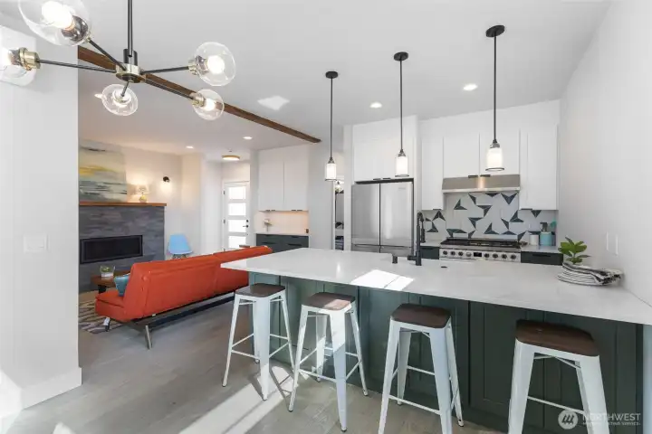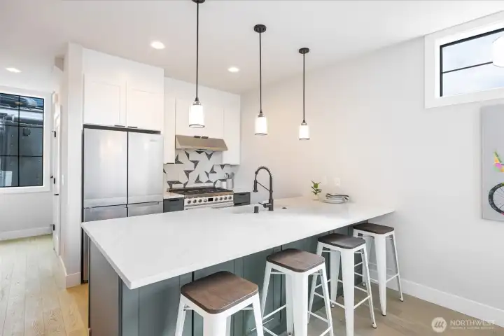 New Constructed 2BD/2.5BR modern house creates simple yet sophisticated aesthetic w/ light-filled interiors, open-concept floor plans, vaulted ceilings and integrating indoor & outdoor spaces. Nested in an unique curvy tree-lined street in Broadview. Walking distance to Carkeek Park, Viewlands Elem. and lots of great local businesses & restaurants. Homes built by Array Build are all about details: Oak hardwood flooring and crisp modern tiles throughout living, kitchen, dining and rest of home. Including all high-end appliances, custom cabinets, quartz countertop and energy efficient W/D. Master Suite deck is the perfect place for relaxation. This beautiful inspired architecture deign is ready for you to call home~