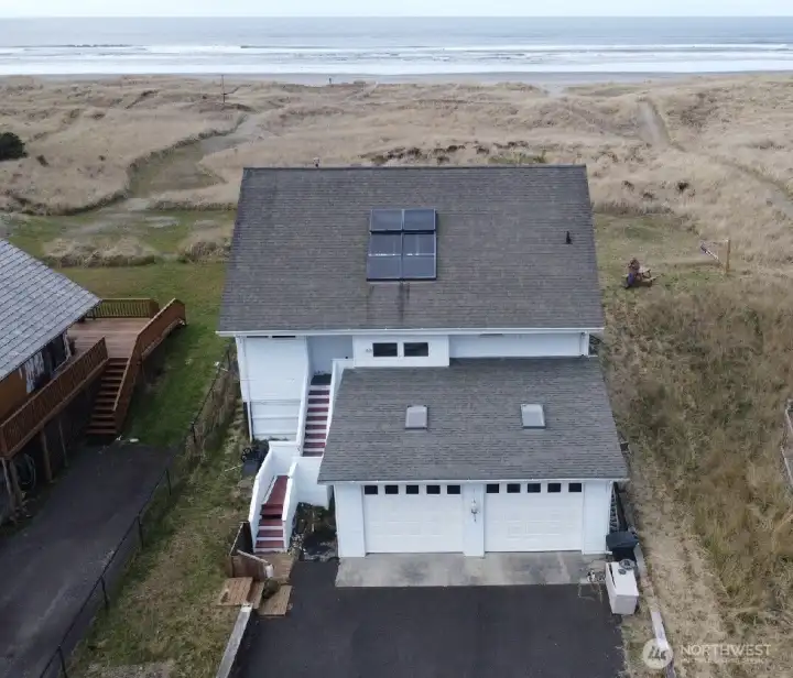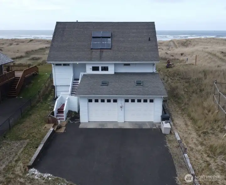 Enjoy Ocean views from this beautiful custom built home in Ocean Park. The main floor offers an enclosed entry with skylights, a spacious living room and dining area and the kitchen and pantry are open to allow for views. One bedroom with private deck and a 3/4 bath. The second level offers a bonus room with a nook directly looking towards the ocean, the upper level offers a bedroom with a wall lined with widows so you do not miss the morning view as you awake. Full bath with soaking tub. Private balcony. The basement level offers a great bonus room with a 1/2 bath and an attached two car garage. Truly a one of a kind home. Septic and surfside water. This property is not in the Surfide HOA.