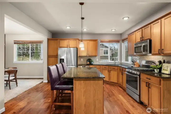Beautifully maintained home in the coveted Central Kitsap School District. Sitting handsomely on a premium lot with a peekaboo Mountain View + open space all around for added privacy, this home features a well designed open floorplan with the beautiful chef's kitchen being placed in the center of the home; perfect for entertaining guests or just everyday living! Spoil yourself in the Primary Suite, with its own luxurious bath, complete with soaking tub, separate shower, & walk-in closet. Three additional bedrooms + spacious laundry room upstairs for added convenience. Enjoy the good life on the generous back deck overlooking the private, fully fenced backyard. Superb location for the award-winning schools, dining and shopping!