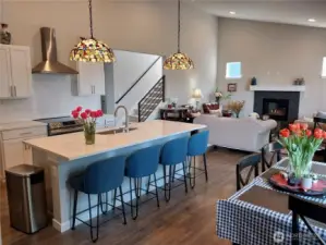 Fantastic floor plan & great location w/ a view! Like new, built 2021,main floor features primary bedroom and 2nd large bedroom w/ adj bath w/ shower. Primary bedroom has vaulted ceilings & luxurious 5-piece bath w/ quartz counters & walk-in closet. French door entry to bright home office. Soaring ceilings in spacious great room, kitchen, & dining area. Huge kitchen w/ large island, quartz counters, & walk-in pantry. Open great room w/ cozy fireplace & windows toward mountain view. Upstairs features versatile bonus room, 2 bedrooms & full bath. High-end laminate flooring in entry, great room, kitchen, hallway, & dining area. Enjoy mountain view from covered rear deck. Fully fenced backyard adjacent to green belt.