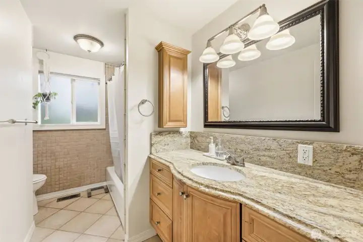 Discover the charm of this sought after single-level home in Marine Hills, offering 3 bedrooms & 1.75 baths. Natural light shines through updated windows, highlighting hardwood floors throughout this rambler. The front living room with gas fireplace creates an inviting place to gather, seamlessly connecting to the dining room. The kitchen features granite counters, SS appliances & convenient bar-style eating area. Spacious bedrooms offer comfort & flexibility for work, play or restful retreat. Bonus second living space opens to patio within fully fenced backyard & generous front lawn adds privacy from the street. Plus connected two car garage & extended driveway provide ample parking. Nearby local amenities, freeway access & Sacajawea Park.