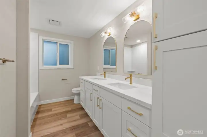 FULLY UPDATED 4 bed, 2.75 bath home in a prime University Place location! Situated at the top of a quiet cul-de-sac, this home is a MUST SEE! Boasting over 2660 sq ft, the main level offers great natural light, spacious masterbedroom w/updated bath, 2nd bdrm, modern kitchen w/new appliances, large island w/waterfall quartz countertops, & contemporary finishes. Downstairs includes a large rec room w/sink area ideal for entertaining, two add'l bedrooms, and a private nook perfect for an office/flex rm. New modern flooring runs throughout - luxury plank vinyl upstairs & engineered wood floors down - paired with new appliances, updated fixtures, quartz bath surrounds, brand new oversized Trex deck, private backyard, & no HOA! This won't last!