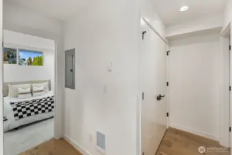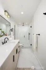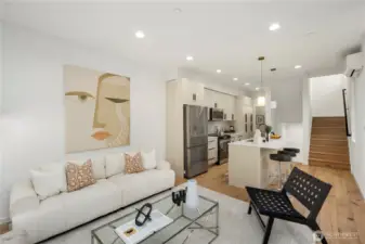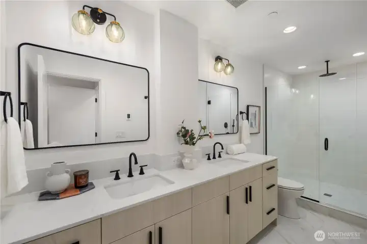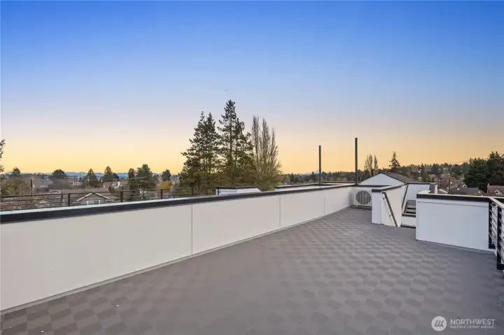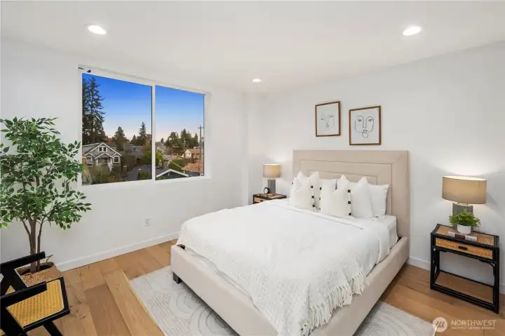 Greenway Homes presents three new homes all lifestyle centered around Green Lake and Phinney Ridge, this home offers a gracious floorplan with two bedrooms and elevated design throughout. An open kitchen and living level with ample storage and space to entertain. The primary suite glows with southwest light and includes a deluxe en-suite bath with a walk-in shower, and heated floors. Main level full bathroom also with heated floors, bedroom and utility closet. Ascend to the rooftop deck for sweeping territorial vistas and a stunning view of Mount Rainier. Off-street parking is EV-ready. Just a short walk to the Green Lake loop, Woodland Park, Phinney Ridge shops, and more.