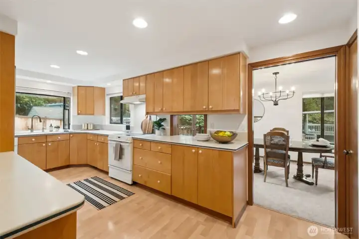 Beautifully maintained and solidly built, this two-story Lake Forest Park home showcases vaulted ceilings, skylights, and abundant natural light. Recent updates include fresh paint, new main-level flooring, modern lighting, and refined window coverings. Enjoy fireside moments in the living room or unwind in the spacious family room, the warm heart of the home. Indoor–outdoor living flows effortlessly to a lush, fully fenced backyard from both dining and living areas. The main level features an exceptional circular floorplan, with four bedrooms upstairs plus a versatile 300± sq ft flex room. Near scenic trails, parks, the waterfront, Lake Washington, and LFP Town Center. No HOA. Simple serenity, comfort, and timeless Northwest beauty.