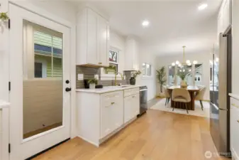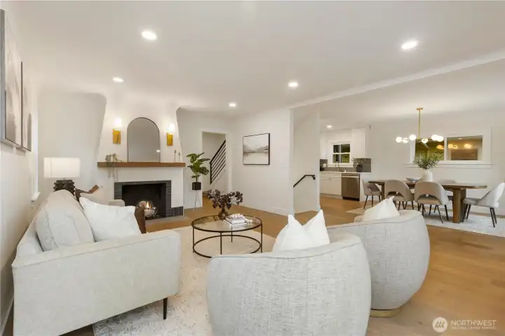 Classic Craftsman meets modern updates in this fully permitted home. Set above the street w/a spacious entry deck - perfect place to enjoy the neighborhood charm. Inside find rich open spaces w/cozy original FP anchoring the airy lvg rm. Dining adjoins timeless kitchen w/new cabs, counters, SS appliances & designer finishes. Sophisticated primary retreat on the main w/lrg walk-in, spa-like BA featuring oversized shower, plus French doors to the freshly landscaped yard & back deck - extending the relaxation & entertainment spaces. 2 beds & full BA up, plus 4th bed, full BA & office down. Lrg bonus w/exterior access—offering tons of flexibility. New roof, electrical, plumbing, mini splits & more! Quiet, tree-lined street, truly move-in ready!