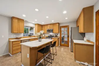 Move in ready 4-bed, 3-bath home boasts many recent upgrades, including fresh interior paint, carpet, appliances and new roof. A covered front porch entry that connects to living/dining rms. Kitchen features abundant cabinetry, walk-in pantry, island and dining area that opens to the family rm w/gas fireplace. Off family rm is an office & two finished rms w/exterior door, perfect for an ADU, along with a 3/4 bath on the main level. Upstairs a primary suite w/ 5-piece bath, three additional bedrooms, laundry rm w/attic access, and full bath. The 3-car finished garage includes another attic access. Enjoy the 10x20 lighted covered patio. Fully fenced backyard with a pea gravel play area, full yard sprinkler system, RV parking, garden sheds.