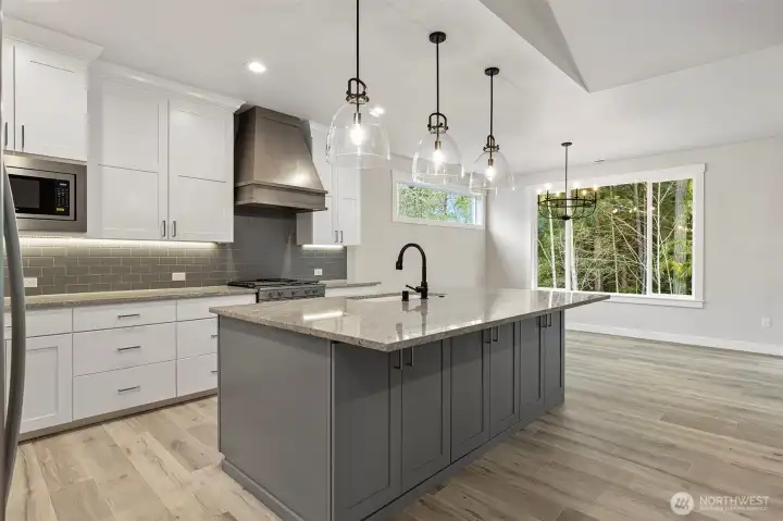Boise Creek Cove in Enumclaw, a Fabulous New Home Community of 18 homes by Award Winning Builder, JK Monarch. Semi-Custom Built 1-story home featuring quartz counters, 8' doors, 5" base millwork, etc. Great room w/tile surround fireplace flows to the Chefs kitchen featuring SS appliances, spacious island & soft-close cabinets. Dining room opens to covered patio w/natural pine ceiling. Primary bedroom features ensuite w/2 sinks, freestanding tub & walk-in tile/glass shower. Partially fenced, front landscaping, heat pump (A/C) & washer/dryer. Enumclaw’s newest community, where small-town charm meets modern living. Conveniently located to amenities plus a wonderful dog park close by! Presale, photos of similar home, colors & finishes may vary.