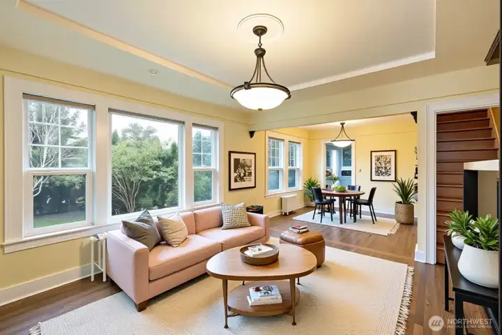 Step back in time and enjoy the vintage charm of this delightful 4-bedroom, 1-bath Craftsman home. The residence features a beautiful entryway that introduces the home's original character, this continues throughout with original hardwood floors, elegant arched doorways, and period coved ceilings. The home offers an expansive, unfinished basement with impressive 9' ceilings, providing abundant storage space and hook-ups for washer and dryer. This generous lower level presents a fantastic opportunity for you to finish and customize to your liking. Convenience is key with this property, as it is situated close to the Naval base, a variety of shopping options, numerous restaurants, and a several nearby bus lines for easy commuting.