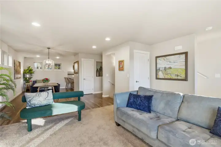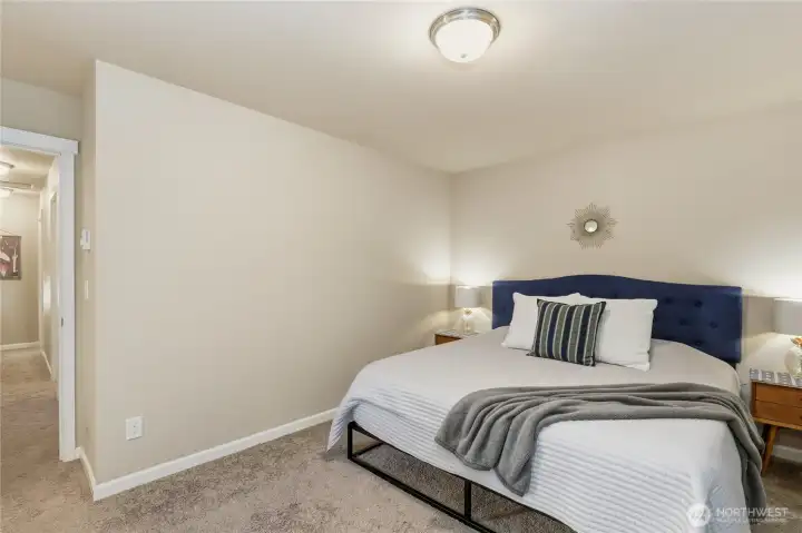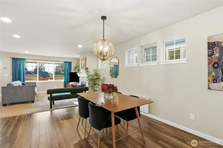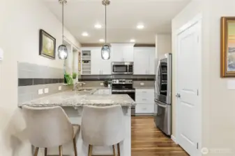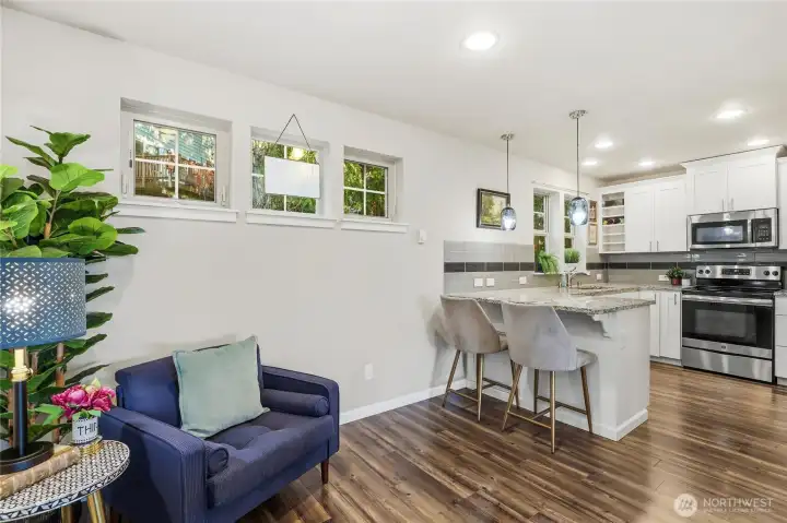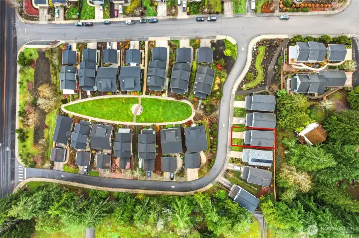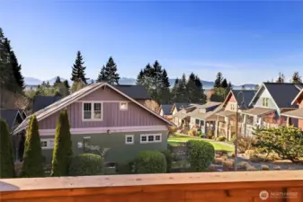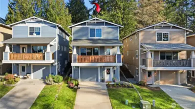 Beautiful low-maintenance NW craftsman home in Snowberry Bungalows. Built in 2017 and thoughtfully designed across three levels. Enjoy striking Mountain and Sound views. The main floor offers a bright living room with a gas fireplace, a stylish kitchen with quartz counters, stainless steel appliances, a cozy nook, and access to a spacious front deck. The top floor includes two bedrooms, a full bath, and a serene primary bedroom with an en-suite bath. The lower level provides a flexible den or office space, plus a half bath. A 2-car tandem garage and radiant wall heat add convenience and energy efficiency to this exceptional home. Convenient to shopping, freeway, and just 20 minutes to Seattle ferries.