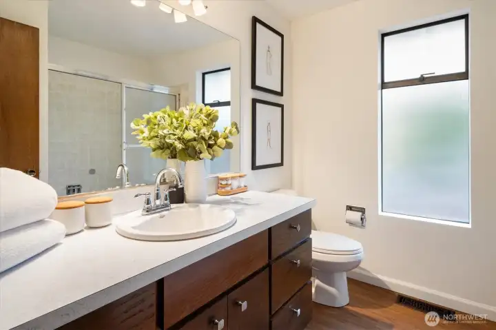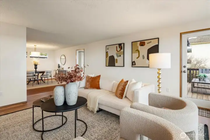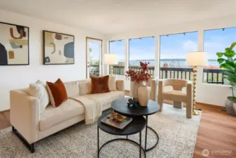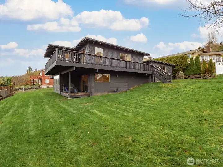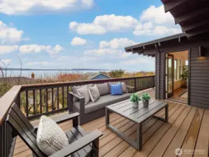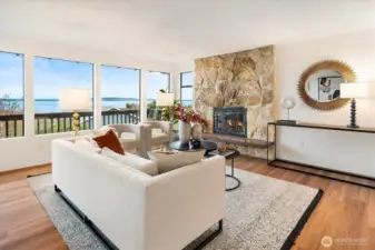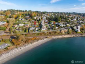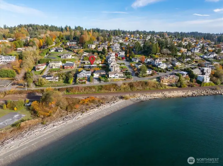 Custom-built & first time on market! Preserved original craftsmanship w/ stone fireplace in the formal living room w/ adjacent dining room. Thoughtful modern updates throughout. 3 main level bedrooms, including a primary that boasts a massive changing room/closet. Lower level has huge rec room, bedroom, bath, office, shop & luxe sauna. Walls of west-facing windows & expansive decks frame sweeping panoramas of Puget Sound and the Olympic Mountains, with vivid sunsets, & the seasonal passage of migrating orcas. Set on a large, peaceful, private lot with mature landscaping & spacious grounds, including rare deeded 1/6 beach rights to the sand-and-driftwood beach just across the street. Welcome home!
