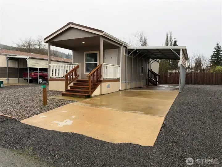 Brand new 2023 model manufactured home in newer 55+ park. 1 bedroom, 3/4 bathroom. Floor plan provides open concept design in main living space. Natural light provides bright and cheery interior atmosphere. Carport and concrete pad for parking. Located right on the bus line for ease of public transportation. Buyer to pay sales tax on purchase price.