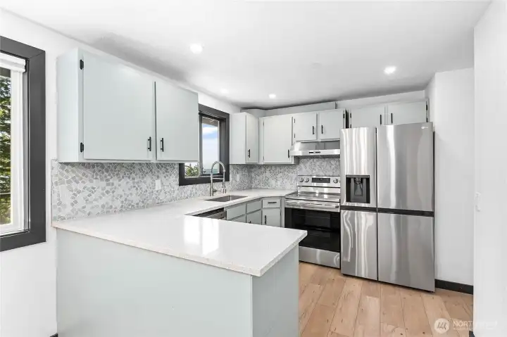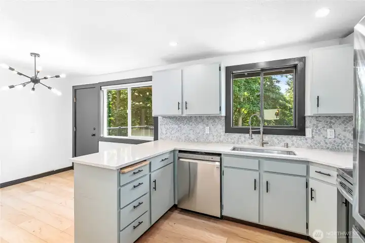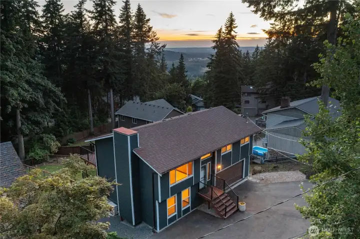 Free lender credit with preferred lender (1% of loan amount). Nestled in Emerald Lake, this fully renovated 1/3-acre gem offers modern comfort and privacy. Newly paved driveway with ample parking and oversized garage. Enjoy territorial views from the two-story Trex deck with access from both levels. Downstairs, a large yard with dog run, fire pit, garden beds, and space for entertaining. Inside features Mitsubishi heat pump A/C up and down, LVP flooring, quartz counters, stainless appliances, tiled baths, new windows, and fresh paint inside and out.