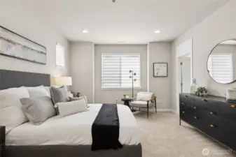 This south-facing Residence 2 offers 4 beds, 3.5 bath w/ a 2 car garage and your covered deck faces a meadow for tremendous privacy and Cascade Mountain views! 3 bedrooms up & a lower-level bedroom/den w/ its own entrance & bathroom! Enjoy cooking in your open kitchen w/ oversized island in the heart of the home. Spacious private suite boasts separate sinks & walk-in closet. You'll love the slab quartz counters, 5 burner gas cooktop, soft close cabs, undercabinet lighting, blinds, surround sound, all appliances and huge covered Trex deck off the dining rm. Lake WA schools, 220V car outlet, Smart Home features & A/C too! Buyers must register their broker on site at first visit, including open houses. Below market rates for qualified buyers.