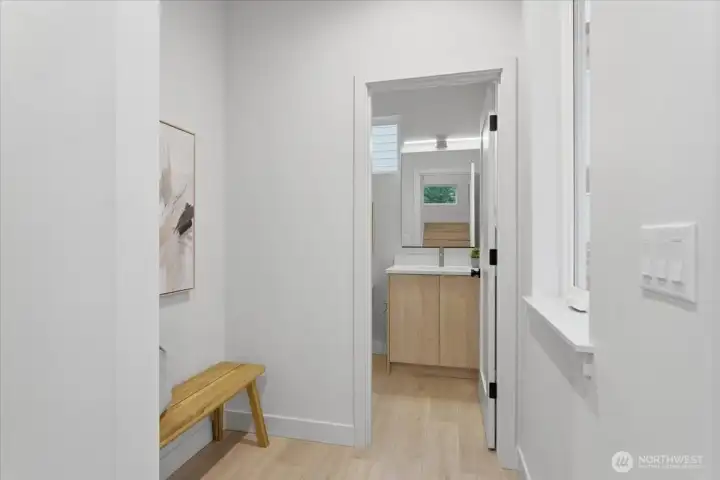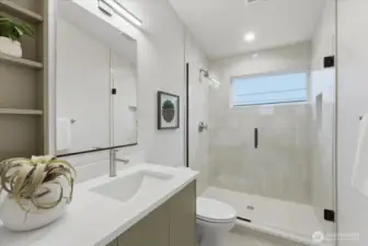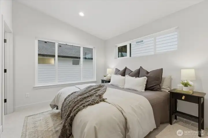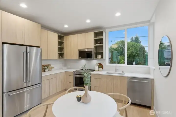 Thoughtfully designed new construction in Seattle’s desirable Maple Leaf neighborhood. The entry opens to an inviting open floor plan and a spacious living room filled with natural light and framed by mountain views. The functional kitchen includes stainless steel appliances and plenty of room for cooking and entertaining, with a convenient half bath completing the main floor. Upstairs features two generous bedrooms, each with its own ensuite bath. An attached spacious garage and additional storage space, plus a private yard, provide comfort and everyday convenience.