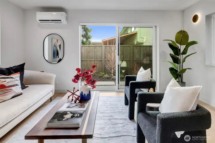 Crafted modern aesthetic, this detached Brighton residence offers a refined vision of in-city living. Cedar siding defines the exterior with warmth & texture, setting the architectural tone. Inside, the open concept main floor unfolds with calm continuity—living, dining & kitchen beneath expanded ceilings, grounded by light-toned flooring. Custom lighting adds dimension, while sliding doors extend the space to a private patio. Upstairs, two bedrooms form distinctive retreats: one ensuite featuring a walk-in shower, the other paired with a deep soaking tub. Stainless appliances, A/C & custom windows highlight thoughtful design. Dedicated parking & expert landscaping complete this modern composition of style, efficiency & quiet luxury.