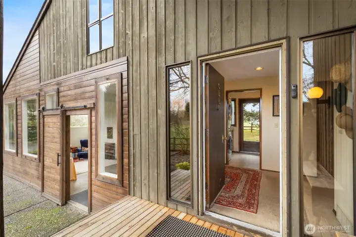 Designed by a prominent PNW architect, this 70's home offers serene water views and stunning mountain vistas. Just minutes from the Lower Dungeness River—with its trails, fishing, and abundant wildlife—it’s a true bird-watching paradise. The light-filled great room features a cozy propane fireplace and expansive windows that bring the outdoors in, with French doors opening to a new oversized deck ideal for entertaining or relaxing. Upstairs you’ll find three bedrooms and a full bath. Additional features include a sauna, 1-car garage, and an enclosed carport that can serve as a bonus room, workshop, studio, or creative space. 10 minutes from downtown Sequim and all of it's conveniences. A one-of-a-kind retreat style home!