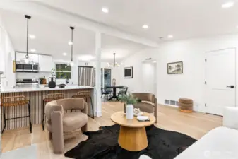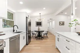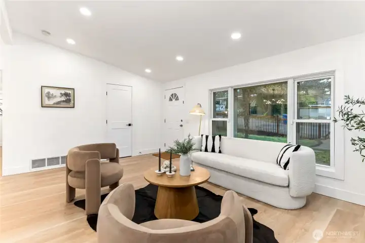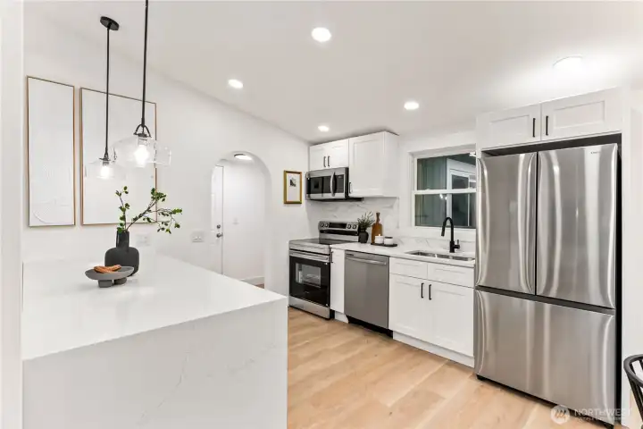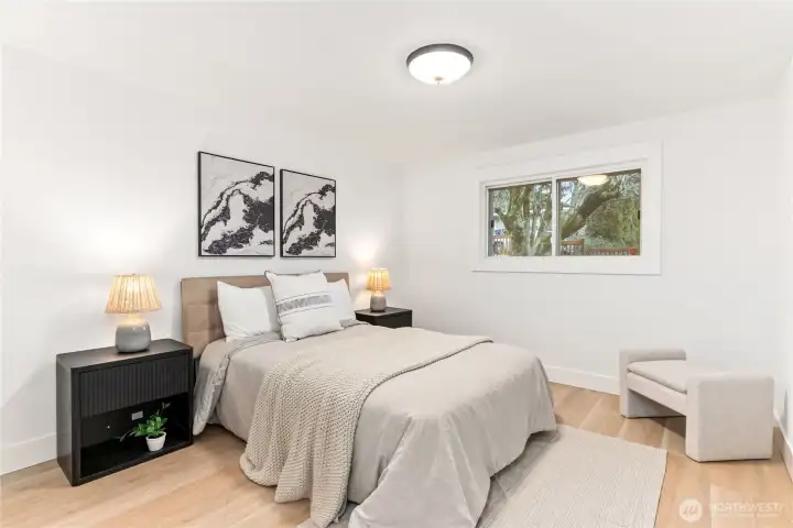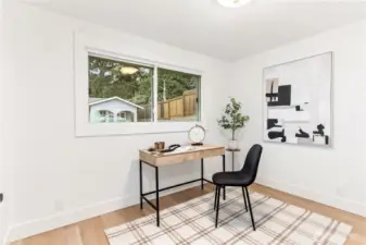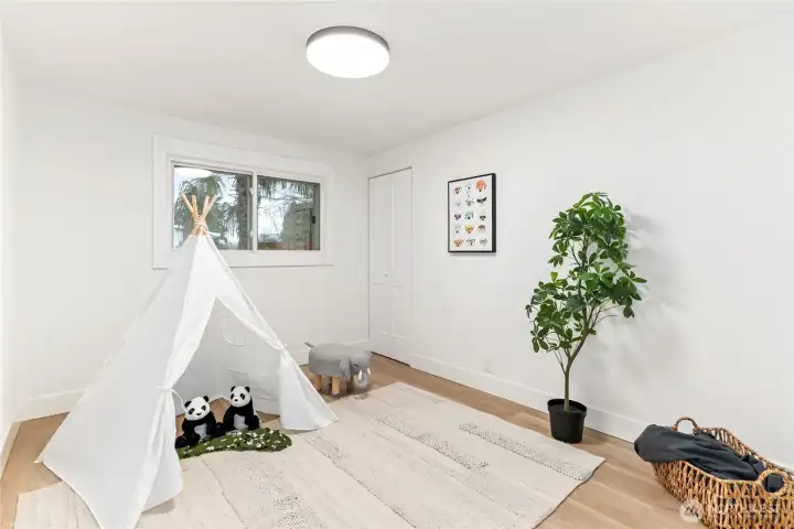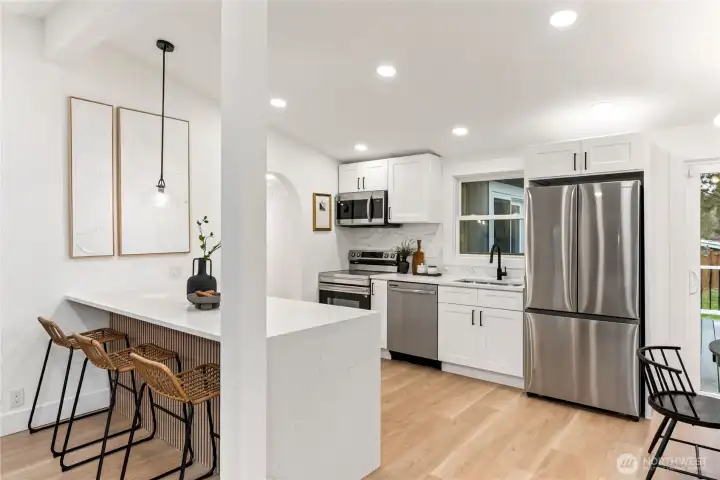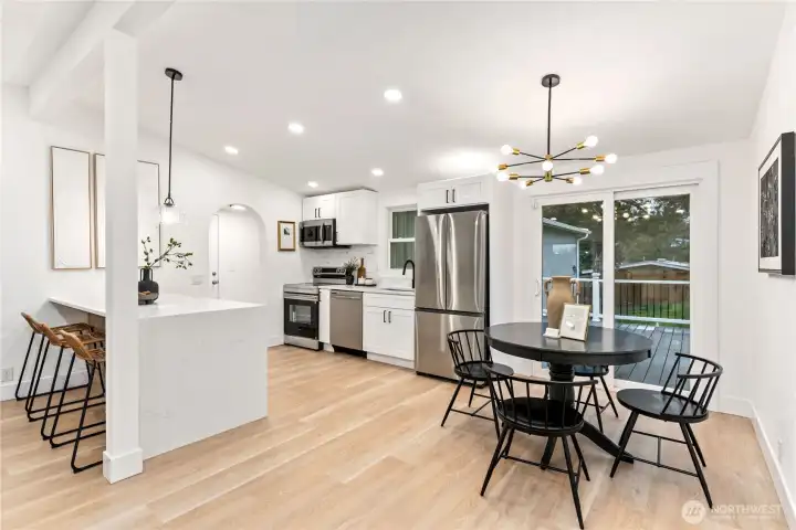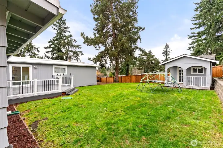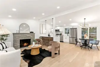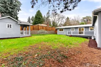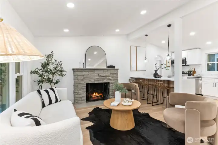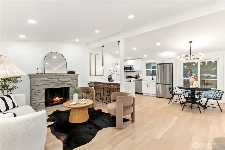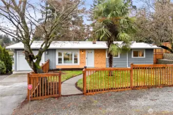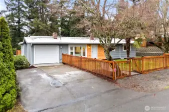 Welcome to this beautifully updated 4-bedroom, 1.75-bath home that perfectly blends comfort, style, and functionality. The open-concept main living area features a renovated kitchen w/large island, modern appliances, and ample counter space-ideal for entertaining or everyday living. Relax by the cozy wood-burning fireplace in the master suite, which also includes a generous walk-in closet. The living room offers another inviting fireplace, perfect for cool evenings. Enjoy outdoor living on the deck overlooking the fully fenced backyard with a storage shed or playhouse. Two separate attached garages offer plenty of room for hobbies or storage. Situated on a desirable corner lot, this home is ready for you to move in and make it your own.