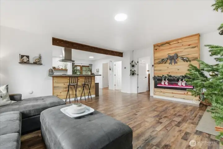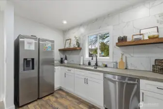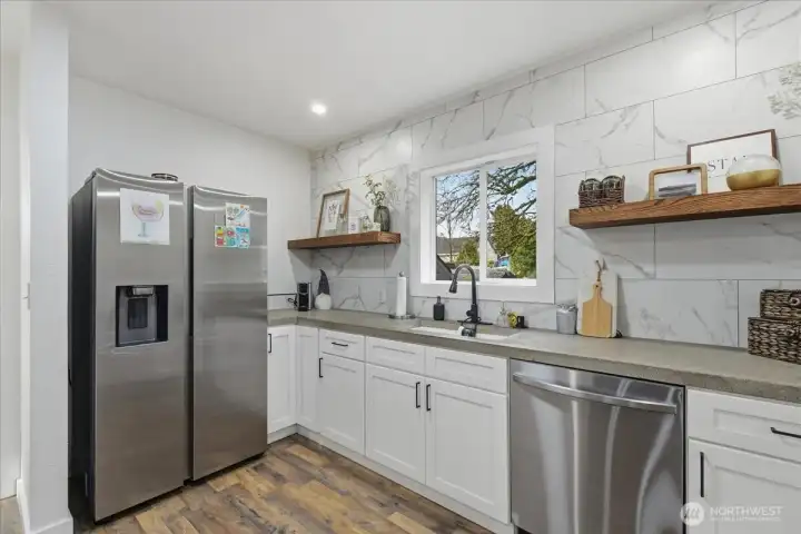 Move in Ready! Remodeled and full of charm, this home is packed with custom features throughout. Enjoy a spacious living area with newer flooring and a beautifully crafted custom fireplace. The open kitchen shines with custom concrete countertops and newer appliances that stay. The large bathroom offers a custom countertop of its own, plus abundant storage. French doors lead out to a back deck overlooking the expansive backyard perfect for relaxing/entertaining. A massive laundry room with a built-in custom bench provides even more storage and connects to the attached 2 car garage. In the basement you will find a flex room for extra space. Located on a quiet dead-end street, this home combines style, comfort and functionality.