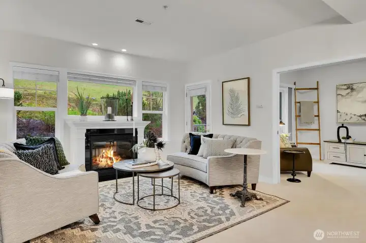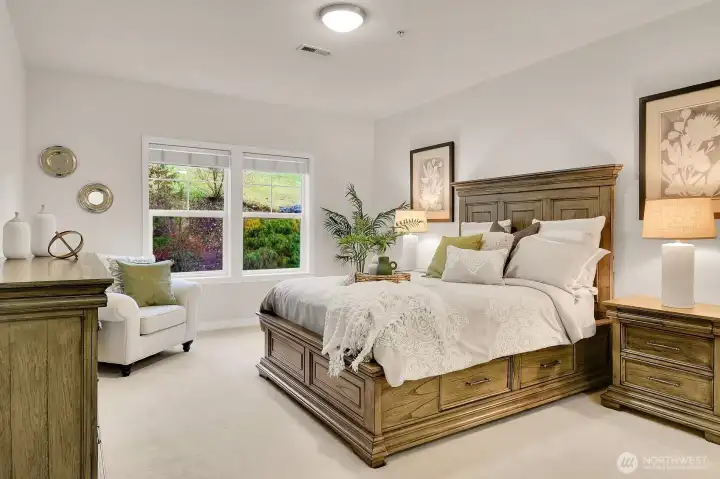 Issaquah’s premier 55+ community offers independent living with an active lifestyle.You’ll find an abundance of amenities & activities for everyone. Enjoy gorgeous views of nature & privacy from every room in this exquisite top floor, end unit home. Bright/open floor plan has been tastefully updated throughout & provides a peaceful & comfortable atmosphere. Quality finishes include granite counters, marble floors, SS appliances, built-in cabs/shelving, closet organizers, A/C, newer furnace, carpet & paint.2nd bedroom (flex room) also makes for a great den, TV or hobby room. Also included are 2 large view decks, storage room & 2 convenient parking spaces right at the elevator for quick, easy access to unit. Furniture items also for sale.
