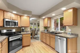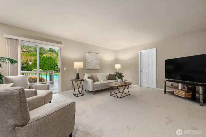 Fully renovated tri-level on a wonderful 26,572 lot in Olympic Ridge. This one owner home has been lovingly maintained with care given to many landscape updates and home improvements over the years. Open floor plan: living room w/gas fireplace, dining area and kitchen w/eating space features new, stainless Frigidaire appliances. There is also direct access outside to the entertainment-sized deck. 3 bedrooms up with recently renovated primary bath. Lower level family room. Upgrades: new comp roof, newer furnace w/AC and hot water heater, fresh paint inside and out, new carpet, recently added cedar fence on north and south property lines. Generous lot has a re-surfaced sport court, tiered yard and ample space for RV or boat parking.