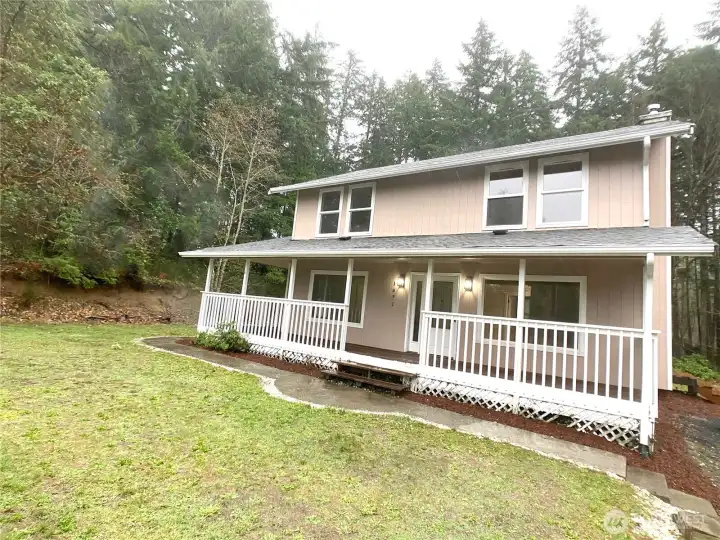 Updated 3 bed 2.5 bath home on 1.25 level acres!! New LVP flooring, trim, and doors throughout creates a seamless feel to the home. White shaker cabinets with soft close drawers/doors, quartz countertops, tile backsplash, and SS appliances in the kitchen. Wrap around covered porch is perfect for BBQs, entertaining guests, and relaxing in the evenings. Mini split on main level for energy efficient heating/cooling. Freshly painting inside and out. Newer roof. Mature trees surround three sides of the home for privacy with an open field in front: perfect for a garden, shop, etc (buyer to verify use with Mason County Planning). Plenty of parking for 3+ vehicles plus an RV.