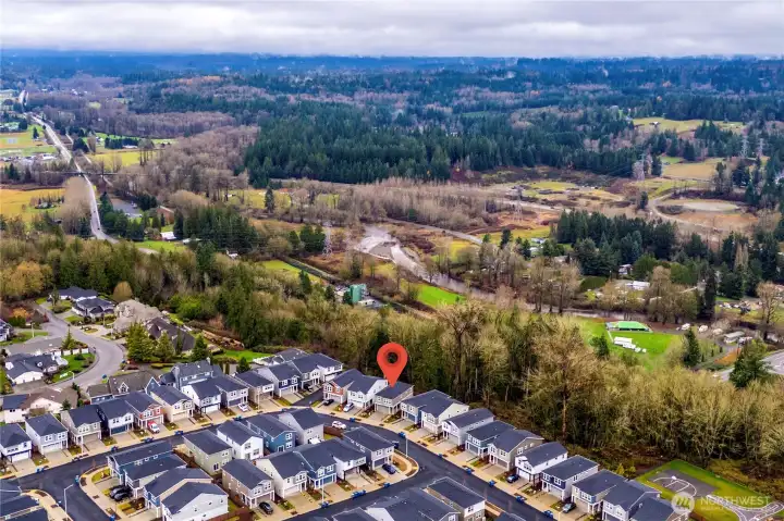 Skip the wait, this freshly completed home is turnkey from day one. One of the best lots in Woodberry Hills, this home gives you a rare oversized backyard backing to trees and on a clear day views of Mt Baker. The main level is bright and open with a modern kitchen, large island, walk-in pantry, and dining that flows into the great room. Upstairs, the primary suite features a private bath + large walk-in closet, plus a bonus loft space flooded with natural light. Thoughtful upgrades include A/C, new appliances, a turf dog run with garage access, and added storage. Enjoy parks, trails, sports courts, & sidewalks, plus easy access to Historic Snohomish, lakes, & everyday essentials. Why wait for builder timeline when it’s all ready now?