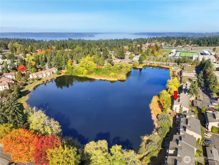 Welcome to the ultimate (Affordable) waterfront lifestyle in the heart of Federal Way! Enjoy breathtaking Sunset & Water views of Easter Lake right from your private patio And the living/dining/kitchen. Recently refreshed w/new paint, carpet, updated lighting & newer water heater. Great open floorplan w/bedroom set back away from living area. Large bedroom closet & full bath w/tub. Indulge in resort-style living w/the community's outdoor pool, clubhouse, hot tub, sauna, fitness center, laundry room & ample visitor parking. Conveniently located near I-5 and Hwy 18 w/easy access to shopping, dining, entertainment, bus lines & New Link light rail station. Don’t miss out—NO Rental Cap, NO Special Assessment, PRICED TO SELL!!