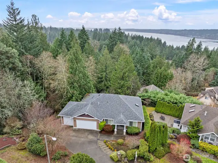 Welcome home to this inviting 1-story home with daylight basement, tucked at the end of a peaceful cul-de-sac with huge Olympic Mountain & Sunset views. The open layout blends gathering spaces & cozy corners with a stone fireplace in the living room just off the kitchen and casual dining area, opening to a back deck perfect for enjoying the stunning views. The main level primary suite is a personal retreat with double vanity, walk-in shower, soaking tub, and & 2 walk-in closets. 3 additional bedrooms, bath, loads of storage, and a family room lead to a private patio and backyard in the lower level. Located in the gated Somerset neighborhood, just minutes from Hwy 16, Starbucks, Costco, Cushman Trail, the Waterfront shops, dining, and more.
