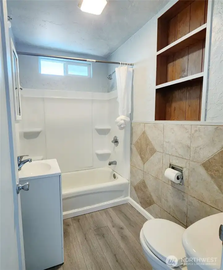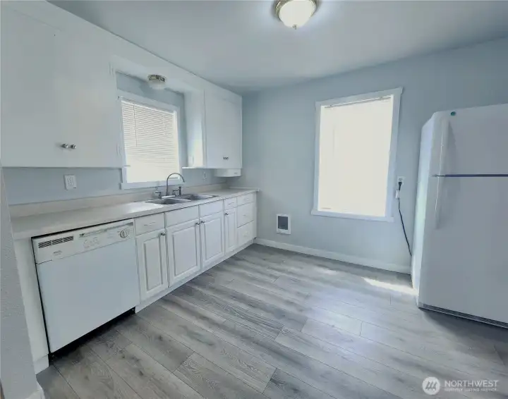 Just a block from the lake and only a few short blocks to Peninsula Park and boat launch, this 2-bedroom, 1-bath home is perfectly located for lake life! Recently renovated with dozens of upgrades, including fresh interior and exterior paint, a refinished bathroom, new luxury vinyl plank flooring throughout, and a new roof. The new fully cedar fenced yard includes underground sprinklers and a 8x10 shed for extra storage. Freshly added gravel offers added parking, and ample room for multiple vehicles, RV, or boat parking. At the end of a dead in street, enjoy the quiet without the through traffic. Move-in ready!