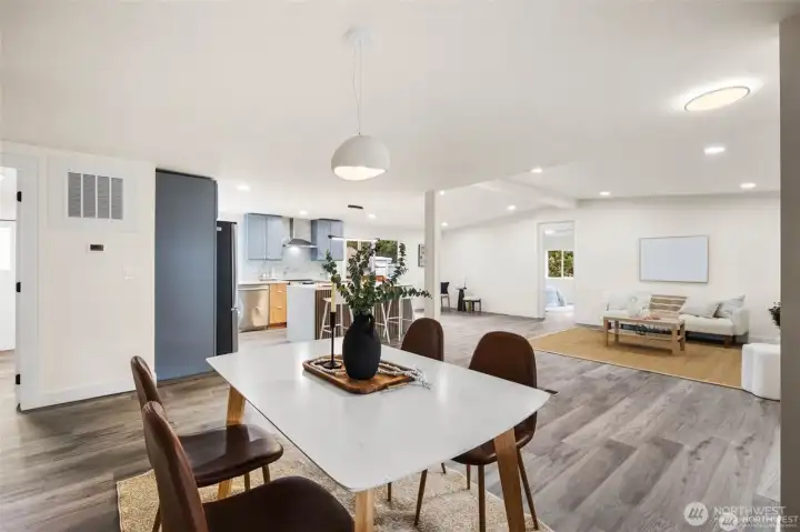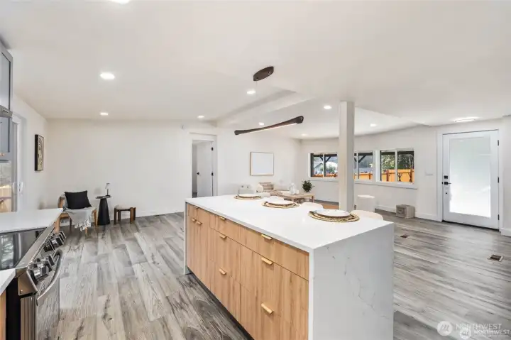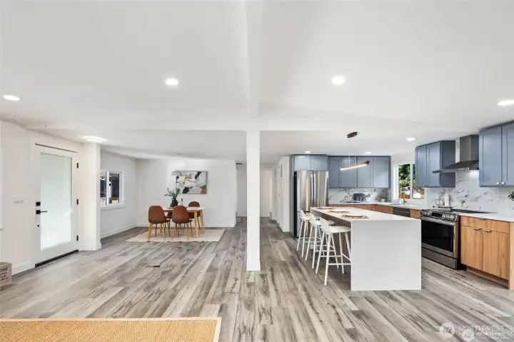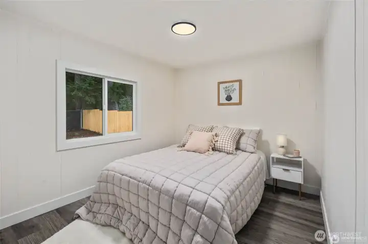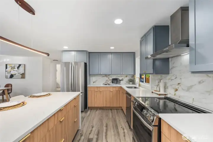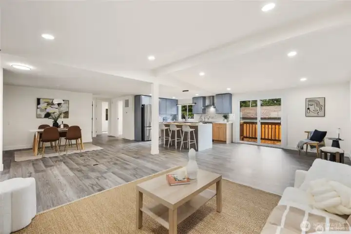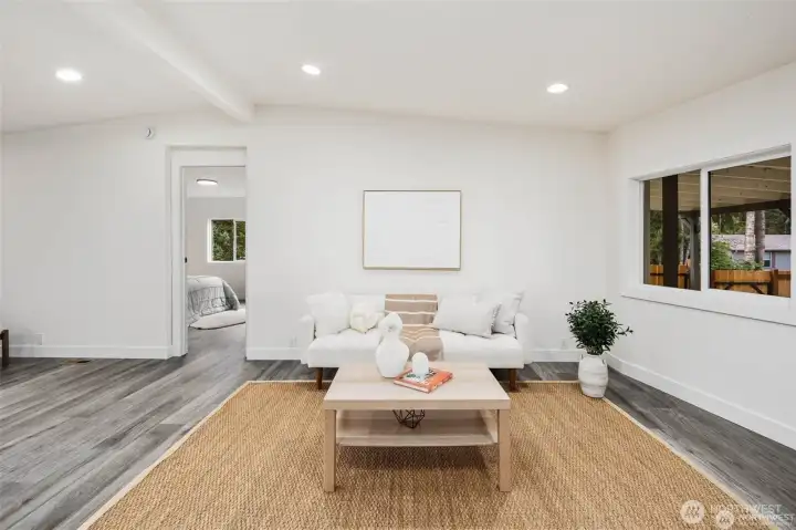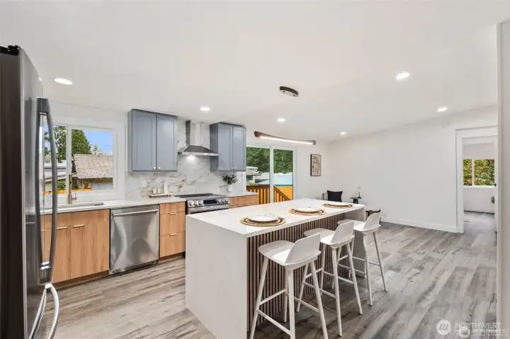 Step into fully remodeled elegance, where fresh paint inside and out and vinyl plank flooring throughout create a bright, modern canvas. This home offers 3 bedrooms and 2 bathrooms, including a spa-like primary suite with a full bath, and sits on an oversized, fully fenced double lot with double gates. A huge covered front deck invites entertaining, and pavers are ready for a bonfire pit. The luxury kitchen features stainless steel appliances, white quartz countertops, and two-tone cabinetry with wood-grain lowers and grey uppers. A huge detached shop and shed add versatile space, while private lake beach access completes this rare blend of style, function, and comfort.
