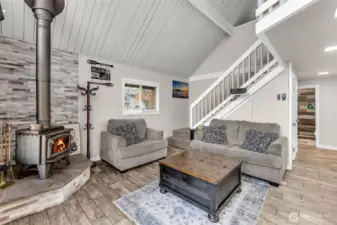 Life is good at the lake! Welcome to this dreamy lakefront A-Frame on Silver Lake, a peaceful retreat designed for slowing down and enjoying the outdoors. Spend your days paddling a canoe, fishing from the dock, or relaxing beside a warm campfire as the evening settles across the water. Floor-to-ceiling windows showcase calming lake views, brightening the updated kitchen and cozy family room warmed by a woodstove. The cabin offers two bedrooms, a refreshed bathroom, and a spacious loft with extra sleeping and living space, creating a comfortable and inviting getaway for everyone.