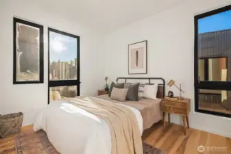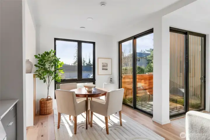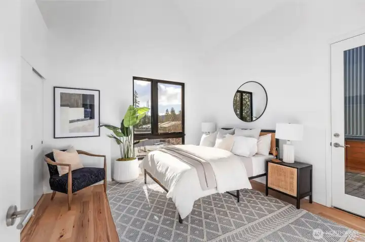 Modern luxury meets sustainable living in this 5-Star Built Green home, designed for those seeking an intentional lifestyle. Nestled in nature but moments from vibrant downtown, this urban oasis offers tranquility & convenience. Enjoy easy access to eateries, shops, galleries, cafes & a peaceful ferry ride to the city, making car-free living a breeze. The home balances serenity w/ modern style, featuring sleek wood finishes, hardwood floors, vaulted ceilings, rooftop decks & expansive windows. Community gardens, bonfire pits & trails enhance the living experience, fostering connection & belonging. W/ efficient and healthy systems, EV-ready parking & solar-ready features, it's the perfect place to live & work, near parks & top-rated schools.