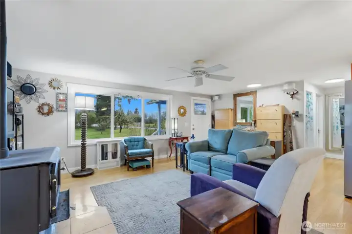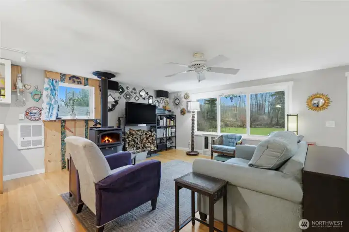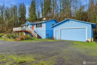 Unique country living - 1 story home on elevated foundation. 1008 SqFt w/open-concept, thoughtfully designed 2 beds, 1 bath home sits on 2 acres. Layout is inviting w/ bamboo flooring, wood stove, & natural light throughout. Bedrooms are spacious. Ext Fiber Cement Siding, New Roof (2024), Ext Paint (2024), and Composite Deck ideal for morning coffee or relaxing evenings. Detached garage - parking, storage, or workshop. New septic installed 2025. Elevated foundation provides exceptional access w/ 8-ft crawlspace. Most of acreage is level and great for gardening, animals, or future possibilities. Several varieties of apple & other fruit-producing trees, perfect for fresh pies, cider, or welcoming wildlife!