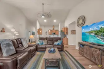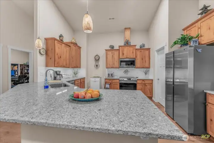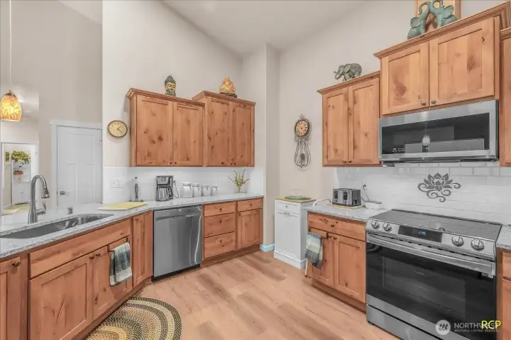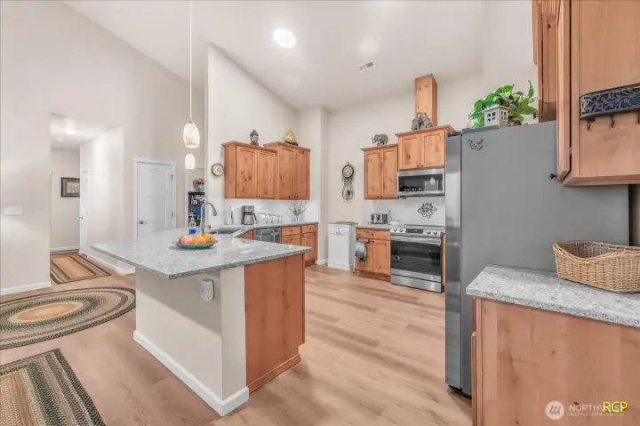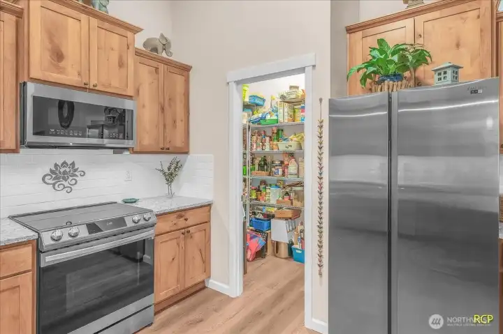 Experience refined living in this 2022 custom home, set on 2 impeccably landscaped acres with full drainage and sweeping territorial views. A vaulted great room framed by oversized Milgard windows & engineered hardwoods anchors the home, offering a stunning first impression. The kitchen includes quartz countertops & walk-in pantry. All stainless appliances + washer/dryer are included. Two private primary suites each feature a walk-in closet and full bath, providing exceptional comfort. An office with fiber-optic internet supports modern work needs. Outside, enjoy a 3-car garage, carport, RV space, fruit trees, curated gardens, vegetable beds, and 50+ cypress trees that add beauty and seclusion. A true turnkey luxury retreat in Kalama.