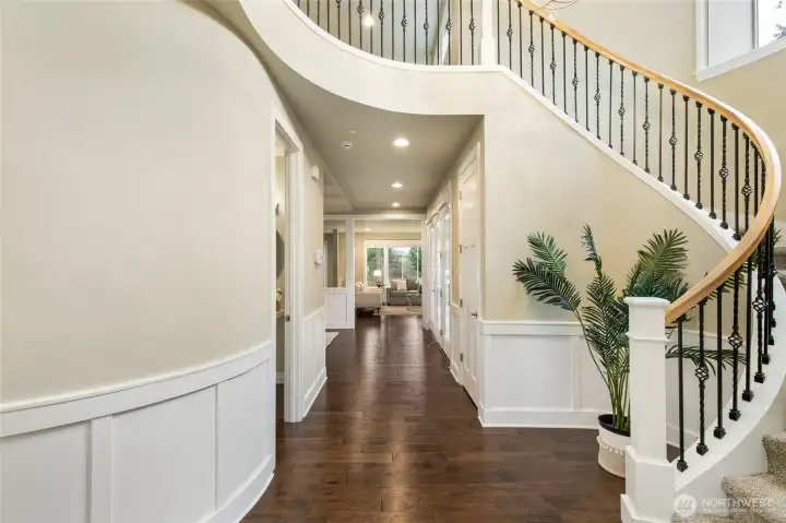 Welcome to this stunning 4 beds + bonus home in the sought-after Ridgeline Estates neighborhood. The award-winning design by Emerald Homes combines high-end finishes with amenity-rich spaces for both luxury and function. Prepare to check all boxes on your wishlist: A grand foyer with spiral staircase creates a memorable first impression. A chef-inspired kitchen featuring a large island, walk-in pantry, GE Monogram appliances and quiet-close cabinetry. An inviting dining room with adjoining butler's pantry. The kitchen leads to the great room with a cozy gas fireplace. A covered side deck with a second fireplace and skylights offers a year-round outdoor living area. The home office overlooks a beautiful front yard. A spacious owner's retreat with a spa-like bath and custom walk-in closet. A Jack-and-Jill bathroom connects the 4th bedroom and 5th bed/bonus room with a balcony. An upstairs laundry room with a sink. A private back yard bordered by green spaces featuring a large patio, fire pit, irrigation system, landscape lighting, vegetable garden and fruit trees. An oversized 3-car garage with ample overhead and cabinet storage included. This meticulously kept home has been pre-inspected for peace of mind. Ridgeline Estates is located in the top-tier Northshore School District and minutes from I-405, making your daily commute to and from Bothell a breeze!