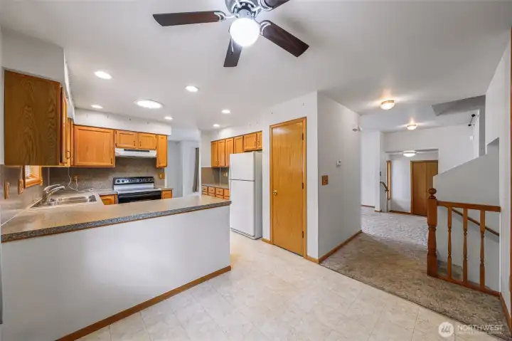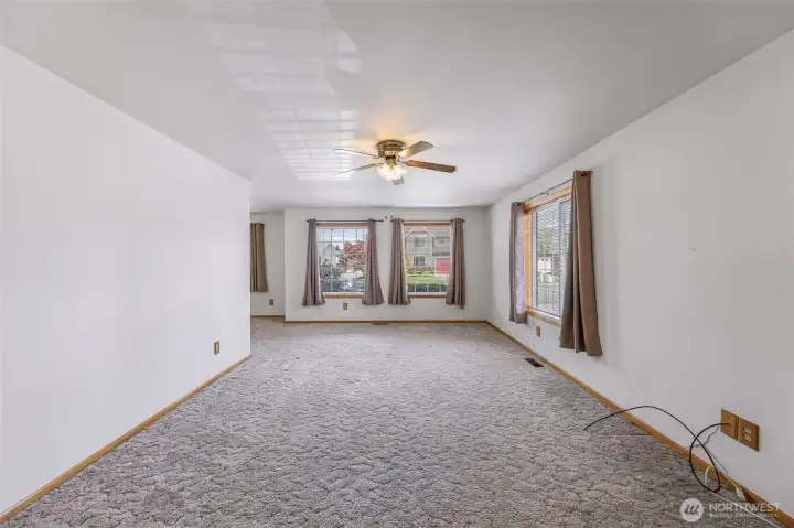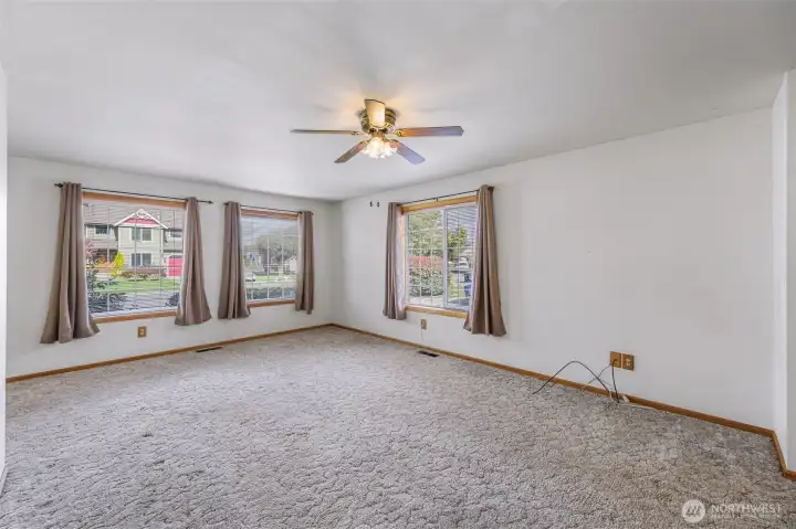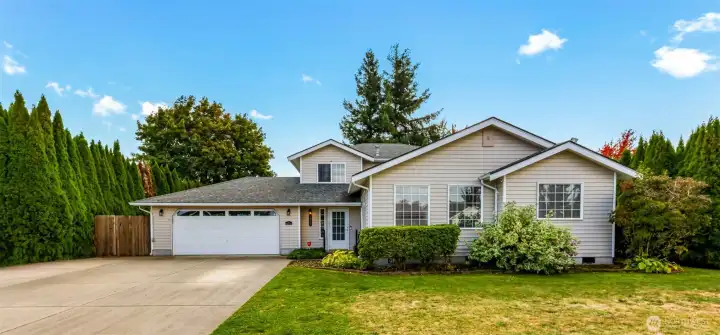 Welcome to your new home! Located on a cul de sac in desirable Lynden, this solid 2,198 square foot home is waiting for your imagination & updates! Inside you will find a spacious primary bedroom with a 3/4 bathroom & dual walk-in closets, a main floor that flows easily from living room to kitchen & down to the bonus room. Also on the lower level is a large walk-in pantry, extra storage & separate office space. A sliding door leads to a 3 season patio that is wired with cable and has a tv mounting bracket - perfect for hosting friends for all kinds of events. From there, you exit into a large back yard with 3 storage sheds...big enough for your inner gardener. Home is also wired for security alarm & a/c.