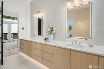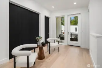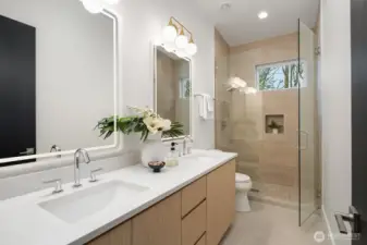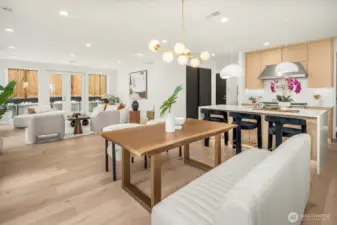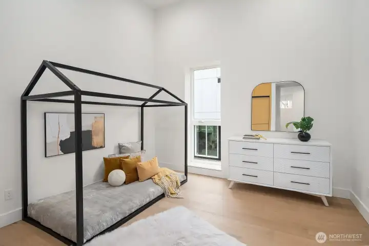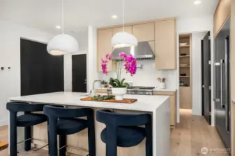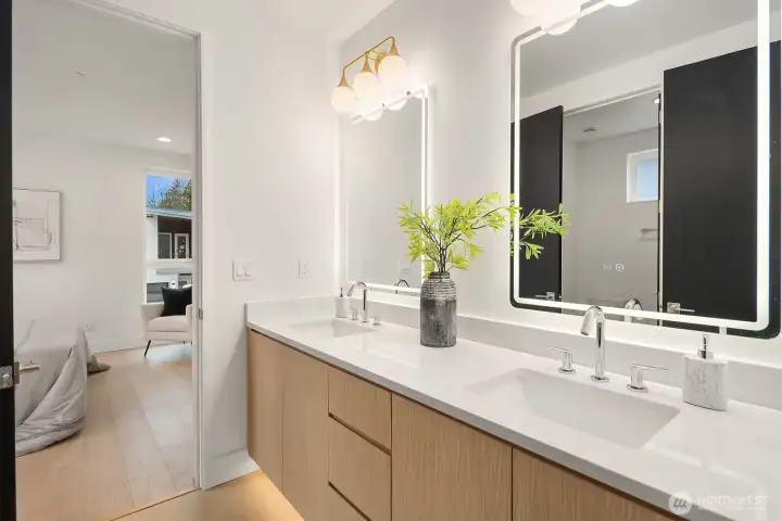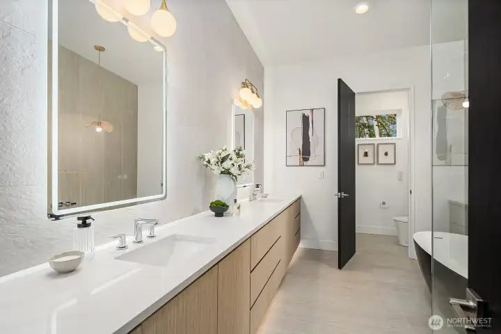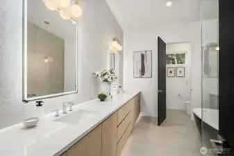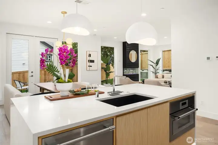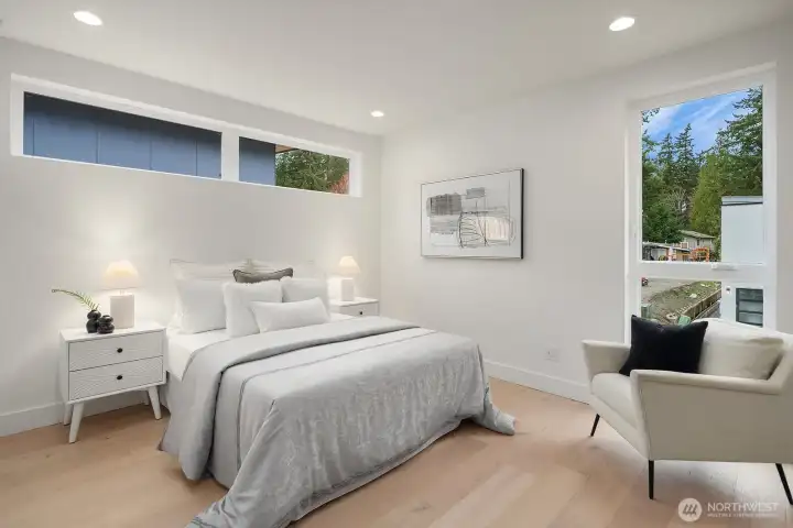 NO HOA! Move-in ready modern retreat in SE Bellevue. This 5BD/5BA home features 9'–12' ceilings, engineered acoustic walls, and an open great room. Main-level guest ensuite with private entrance is ideal for multi-gen living. Gourmet kitchen offers Thermador appliances, quartz surfaces, and custom cabinetry. Upstairs includes a spa-like primary suite with private deck, additional bedrooms, shared bath, laundry, and bonus deck. Home includes office/den, ERV system, epoxy garage, and fully fenced yard. Prime location near I-90, DT Bellevue, Seattle, shopping, and dining.