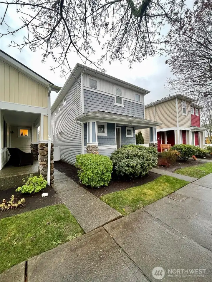 Welcome home! 3 bedroom, 2 and a half bath, 1,673 SF home features an open concept main level living space, with gas fireplace in the Living rm & counter with eating bar in the Kitchen. Upstairs hosts three bedrooms including Primary Suite w/private bth & walk-in closet. Attached 2-car garage. The perfect postage stamp lot! Enjoy your private, fully fenced patio space (with a small yard for pets). Home also has AC! Fabulous location with all amenities at your fingertips: parks flanking both the front and one street over to the back, offering park space, sports court, and playground. Moments to Hawks Prairie Golf Course, dining & shopping, and only 15mins to JBLM.