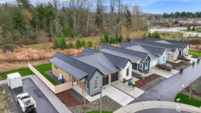 Brand-new modern farmhouse in Cordata’s premier solar community! This thoughtfully designed single level 2-bed, 2-bath home features vaulted ceilings, an open and airy layout, and sleek finishes—including luxury vinyl plank flooring all throughout, quartz countertops, and stainless steel appliances. The spacious primary suite offers a beautifully appointed ensuite and an oversized walk-in closet. Situated on a corner lot that backs to a serene greenbelt, the home provides exceptional privacy and a peaceful setting. Energy-efficient upgrades include a mini-split heat pump with A/C, solar panels, and EV charger prewiring in the garage. Enjoy a fenced, low-maintenance backyard complete with a covered patio. Come check out this special home!