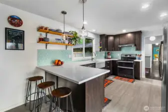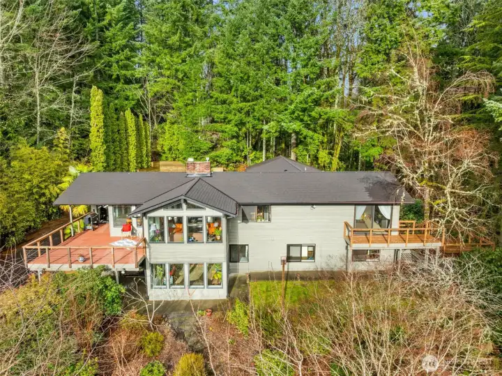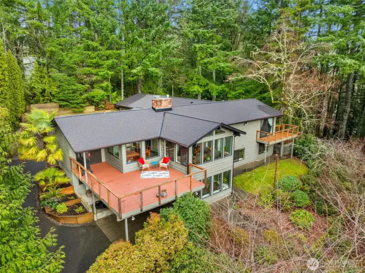 This warm mid-century home blends timeless design with thoughtful updates. Large windows, open living spaces, and natural light honor the original style, while the layout offers easy flow and smart storage. The beautifully remodeled kitchen features modern cabinetry, solid surfaces, and space to prep and gather. Custom baths, 4 bedrooms (plus a 5th finished room), and both living and family rooms. A second kitchenette downstairs would be great for multi-gen living! Set on 1.58± acres, you enjoy room to garden, play, and relax with privacy. Brand new roof & hot water heater, and fresh interior paint make it move-in ready. Close to parks, shopping, commuter routes, Capitol Forest, and served by Tumwater Schools.