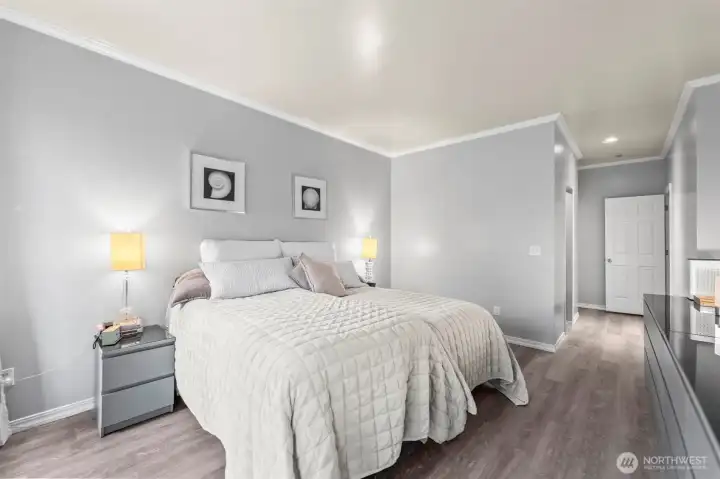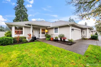 One-level townhome in the heart of the desirable Fircrest community, tucked into a quiet enclave. Nicely updated interior. An open kitchen flows into the living and dining rooms with 9 foot ceilings. Granite tile counters, stainless appliances and cherrywood cabinets with pull-outs and pantry. Gorgeous plank flooring. Cozy gas fireplace. Air conditioning (A/C). The primary suite includes a walk-in closet with built-ins, a private bath with rain-shower and double vanity. You’ll love the private outdoor area - a patio framed by lovely landscape and 30 feet of pergola with moveable canvas cover so you can relax outdoors in any weather! Enjoy nearby shops, dining, park and community center with pickleball, fitness, events & programs.