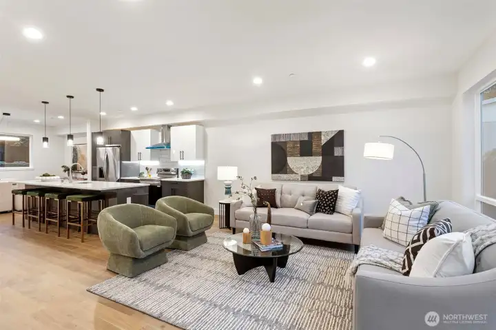 The Villa Townhome Community showcases 7 modern New homes crafted with details! Last 3 units at an unbeatable price! Unit B delivers 1,980 sq. ft 3 levels of sophisticated living with bright lights: 4 bedrooms (2 ensuite), 3.5 baths, a bright open-concept main floor wrapped in oversized window, and a 2-car tandem, finished garage with EV outlet. Designer kitchen with SS appliances, LG ThinQ gas range, quartz counters, and subway-tile backsplashes. Lux baths with SMART mirrors. Every room features mini-split for personalized AC/heat. No rental restrictions and relaxed parking. Ask us about our special 3% Down w/no mortgage insurance program! Near SeaTac Airport with instant access to I-5, Hwy 509, and Boeing. This is a must see!!