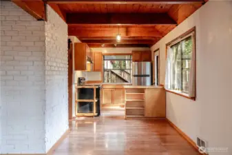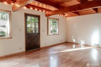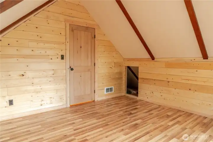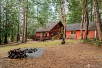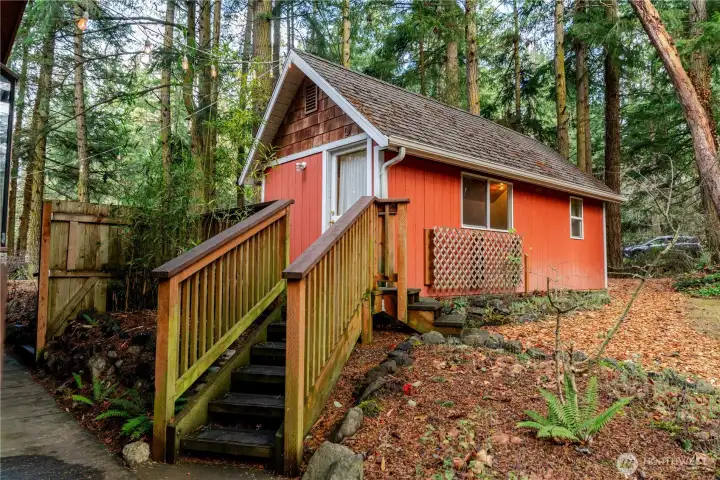 Charming chalet-style cabin on a 1-acre lot with direct access to the Larry Scott Trail. This cozy home includes 2 bedrooms, 1 full bathroom, an extended carport and a versatile detached studio perfect for guests, office, or hobbies. The property features a fenced garden, newly planted fruit trees, fire pit, and two sheds amongst a peaceful wooded surrounding. A perfect full-time home, weekend getaway, or investment opportunity in a prime recreational location.