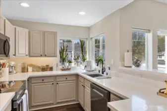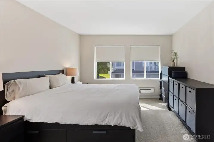 Updated 2 bed/1 bath townhouse. Light & bright S facing unit w/great natural light. Kitchen boasts quartz counters, refreshed cabinets/hardware, new appliances & sensor lighting. Open to dining & living rm w/vaulted ceilings, cozy wood burning fireplace & built in shelves. Xtra pantry + new W/D across from kitchen. Bathroom features new flooring, new vanity, new fixtures & reglazed tub. Generous primary w/walk in closet. New LVP flooring, new thermostat, new H2O heater, updated pex pipe + updated light fixtures & window treatments. The garage...huge bonus! 48 amp EV charging w/load balancer on 100 amp panel. Finished out & painted, w/shelving, workbench & loft storage. A standout unit! NO RENTAL CAP! Close to parks/shopping/commuter routes.