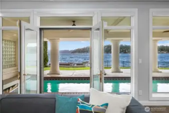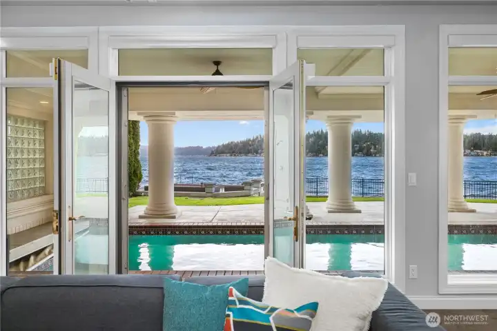 Along 120’ of Lake Sammamish shoreline, this gated waterfront estate blends modern ease with an irresistible connection to the water. Sunlight pours through arched windows, catching the rhythm of tumbling waves and the lake’s soft shimmer. Thoughtfully updated living spaces flow with ease—two contemporary kitchens, a lake-level entertaining hub with a bespoke wine wall, and two-lake-facing primary suites, including a tranquil main-level retreat. Outside, the covered pool, lush lawn, and private dock with boat lift invite inviting refreshing swims, peaceful pauses at the shore, and evenings washed in warm sunset color. Smart-home lighting, security, and audio enhance daily ease. A rare estate where the rhythm of lake life becomes your own.