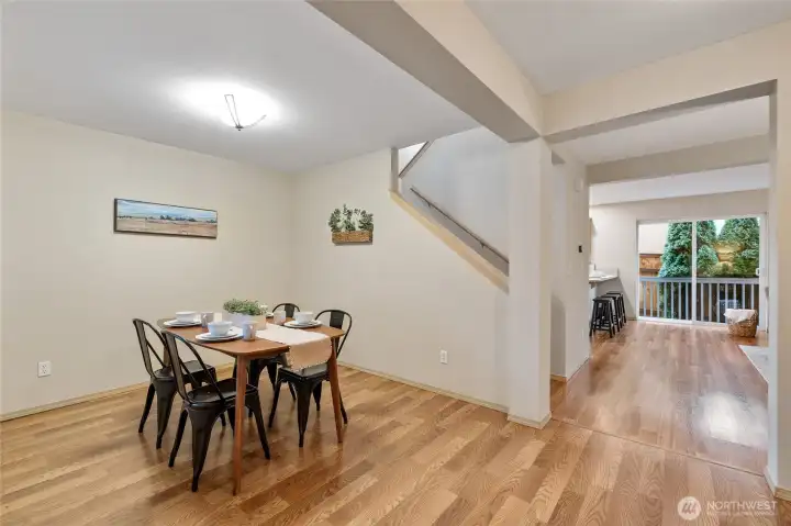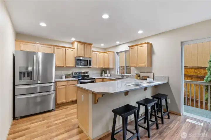 Step inside this 2 Story home that lives like single family- no attached walls but low maintenance yard! Spacious entryway with dining room and open concept kitchen/family. Attached 2 car garage. Newer quartz counters in kitchen with bar area eating space. Low maintenance patio backyard. Upstairs, 3 bedrooms + bonus loft space. Laundry with washer/dryer included. Primary suite with separate tub/shower and large walk in closet. Quite neighborhood, low HOA dues ($18/month) and super convenient location close to Hwy 9 and I5. Affordable and move in ready!