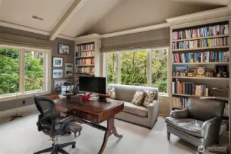 Perfectly located in Seattle’s favorite historic neighborhood, Denny Blaine, this 2001 Bob Maloney designed home accommodates modern lifestyles, yet offers classic design elements: shingled exterior, archways, paneled library, fine moldings, stone balcony, and four fireplaces. Enchanting Lake Washington & Bellevue skyline views. Beautiful materials, carefully maintained & very private! Stunning primary bedroom suite. Open floor plan ideal for gatherings of any size, and includes indoor/outdoor spaces, welcoming kitchen- family room, library, home-office, sun room, gym, recreation room, & play room. Sizeable, beautifully landscaped grounds. Choice location near villages of Leschi, Madrona and Madison Park!