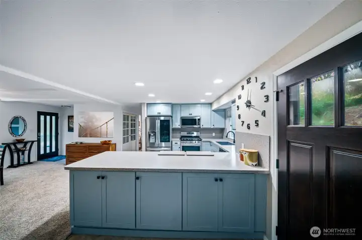 Nestled in a forest, and tucked into a hillside, this completely reimagined rambler home hides above the north end of Black Lake. You can fish, kayak, or just enjoy your recreational access to Black Lake. Every detail of the home was chosen for function, low maintenance, easy comfortable living, beauty, and flexibility. Large windows allow the light that streams through the trees to flood this long open floorplan. Living and dining rooms, plus bonus/flex room. Beautiful sunrises are the perfect backdrop for exploring your gardens with new blooms all spring, summer, and fall. Keyless entries, a backup Generac generator, and an app controlled sprinkler system add to your comfort living here and make it easy to leave behind when you go.